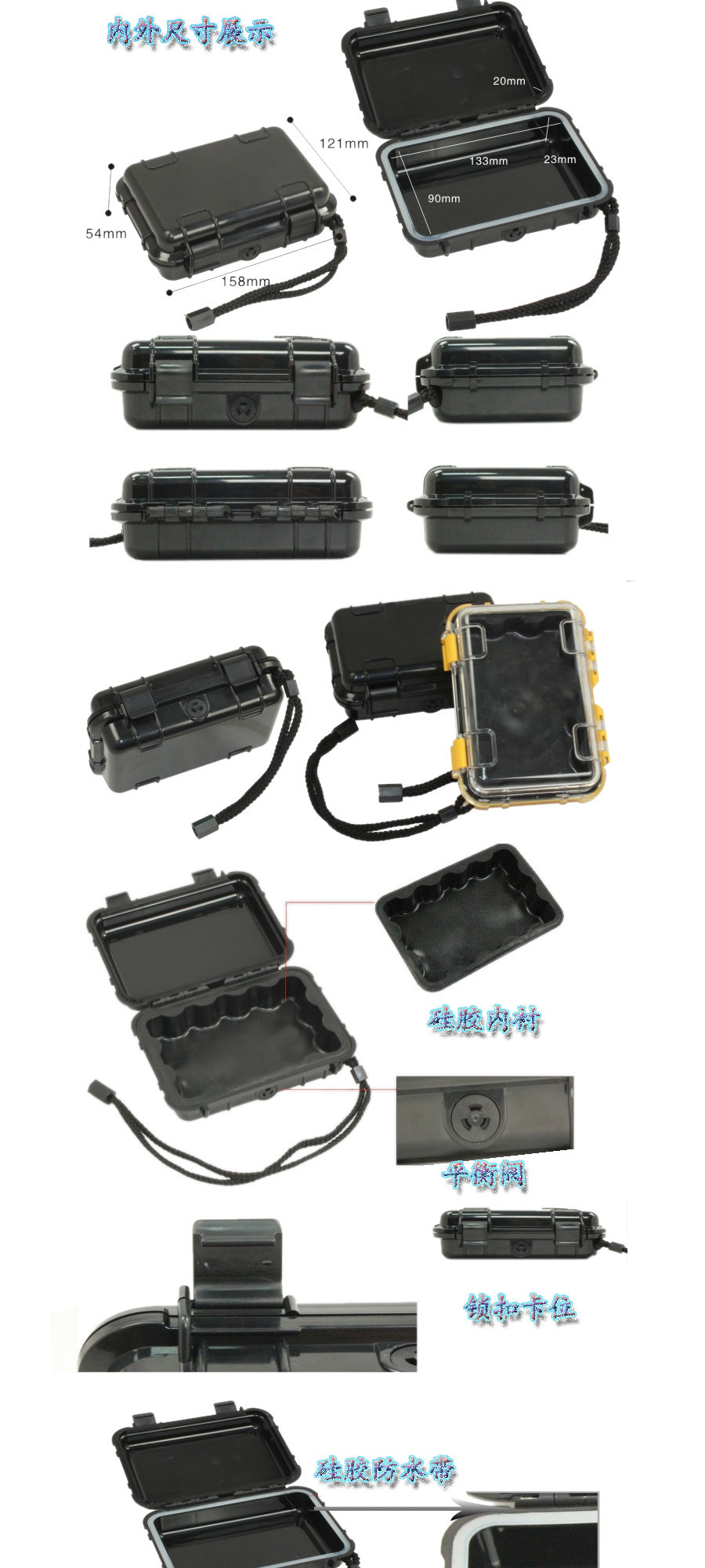 簡介:廣泛用于傳媒、公安、消防、軍隊、航空、戶外攝影、野外考察、科學探測等眾多領域的高端儀器、儀表。具有高強度、高抗壓沖擊、防潮、絕對密封、防塵、防水等特點。